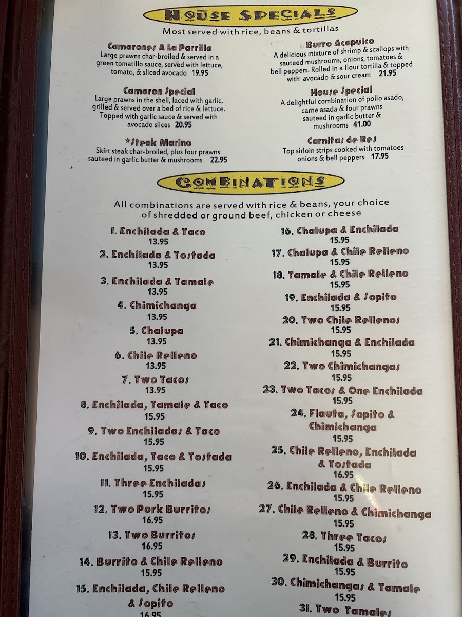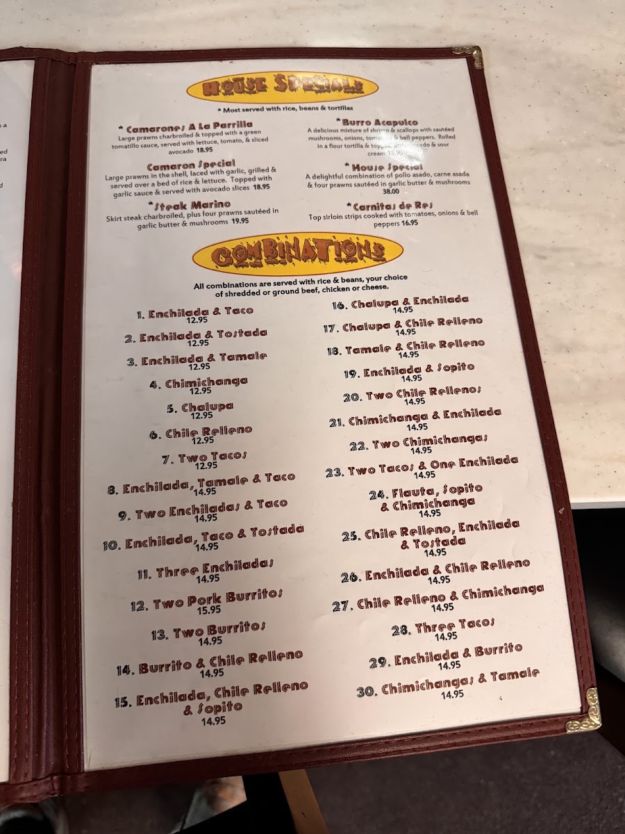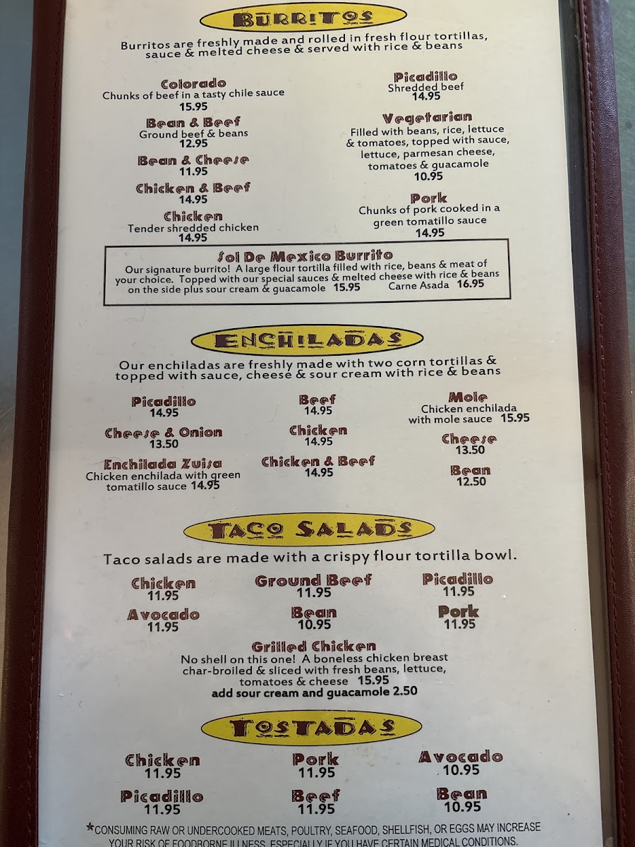 The menu at Sol De Mexico embraces the comforting, familiar flavors of traditional Mexican and Latin American cuisine, presented in a straightforward, inviting style. Whether you're stopping by for a casual lunch or a relaxed dinner, the combinations and dishes offer a hearty, satisfying experience that pairs well with the cozy yet lively atmosphere of the restaurant.